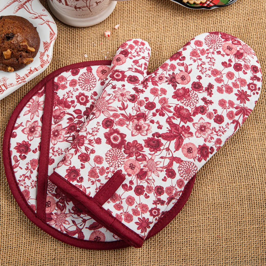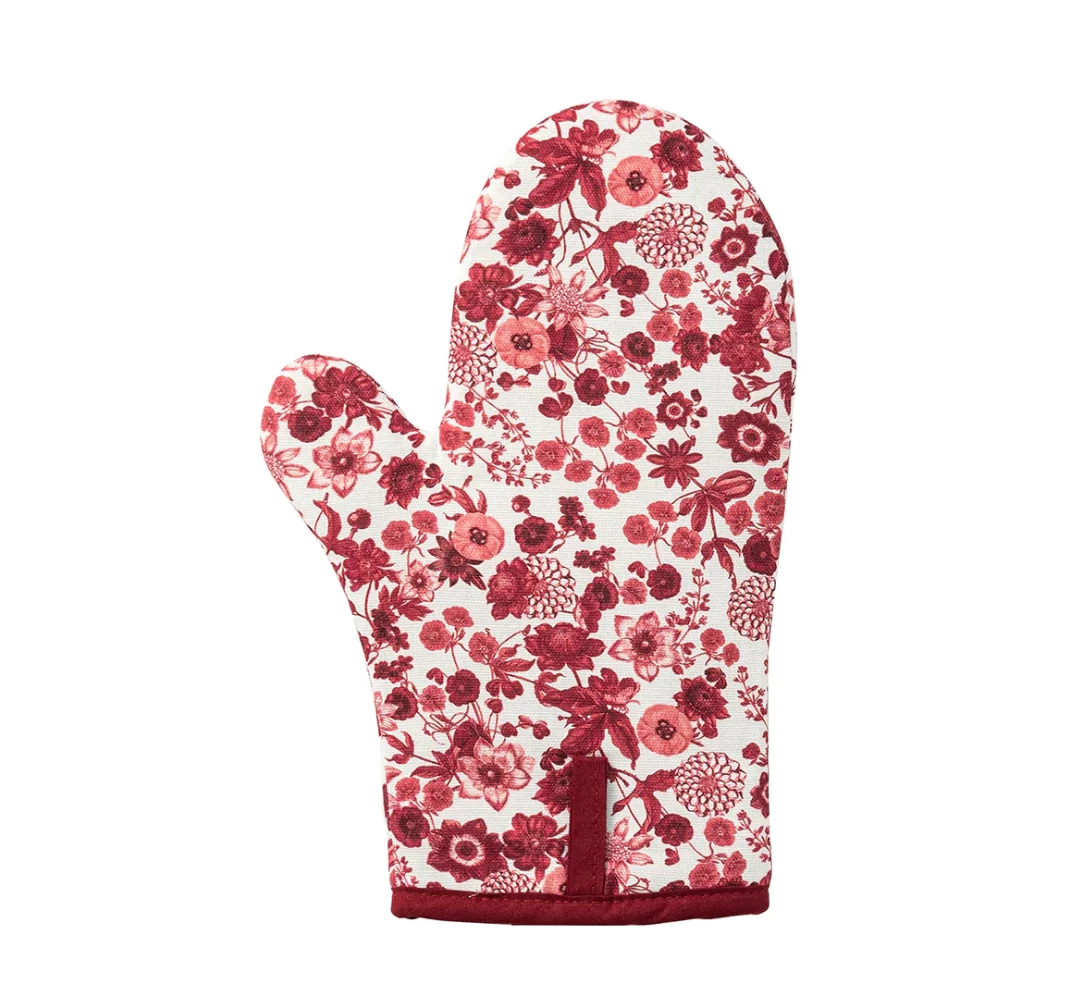 Our lifelong obsession with florals inspired this pattern, featuring our rich ruby hue, that easily mixes with collections year-round – from casual summer soirées to festive Christmas celebrations. This matching set of oven mitt and pot holder looks equally fabulous when serving your best dishes or left strewn on your countertop