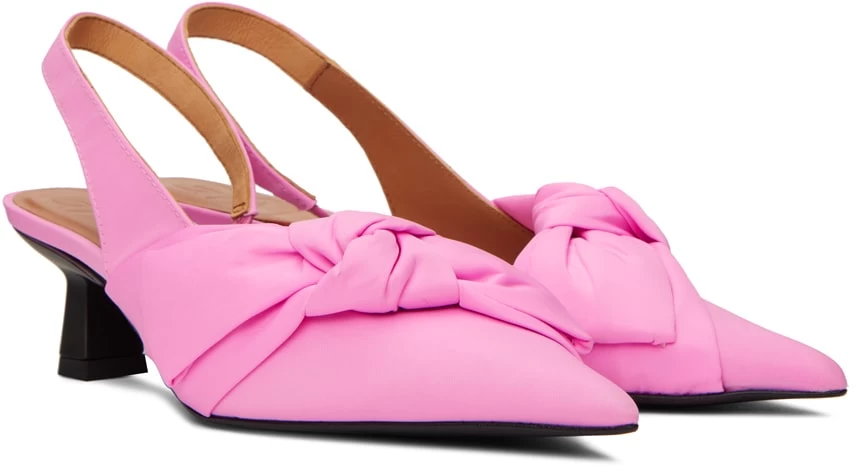 The Soft Bow Slingback Pumps are made from 100% Recycled Nylon. The pump feature a soft bow, slingback strap, kitten heel, and pointed toe.