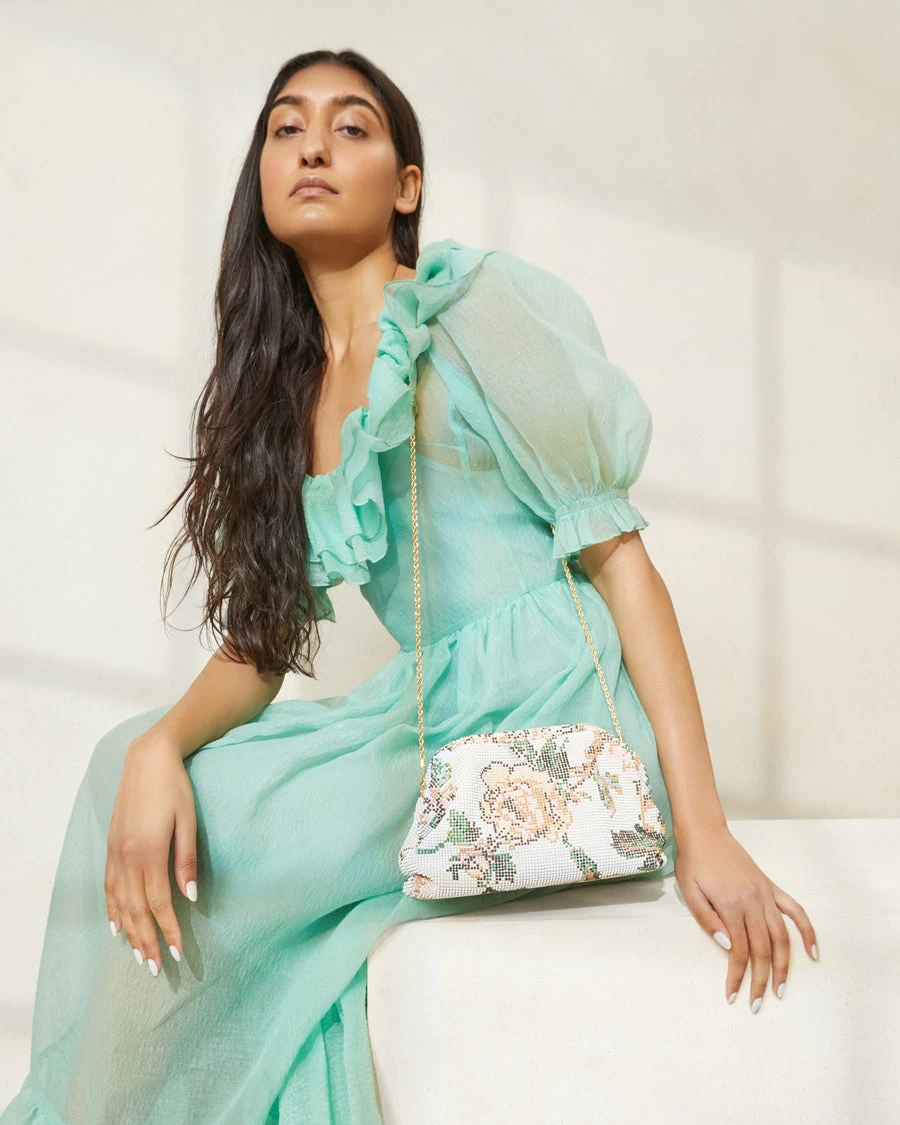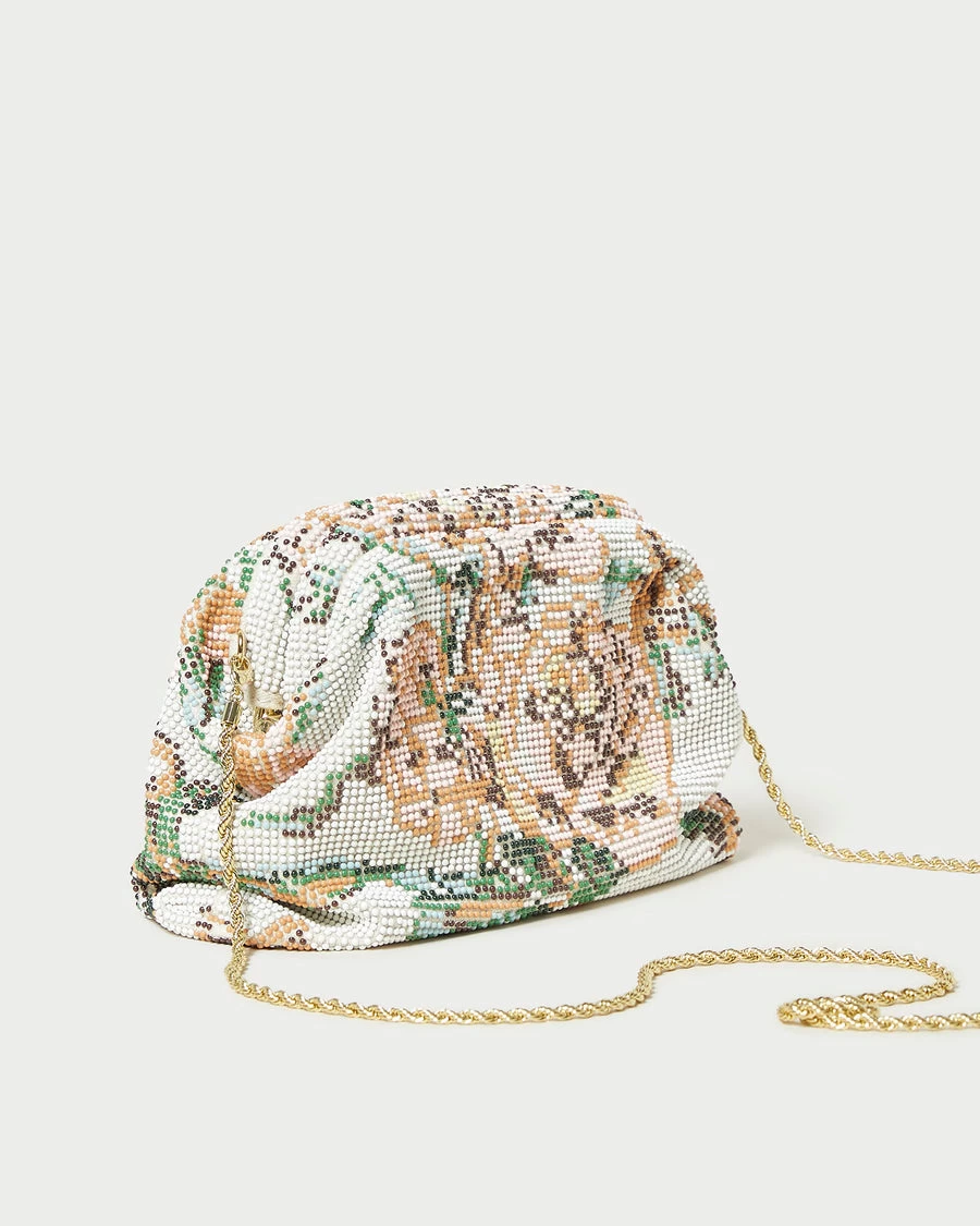 Frame pouch in cream floral.