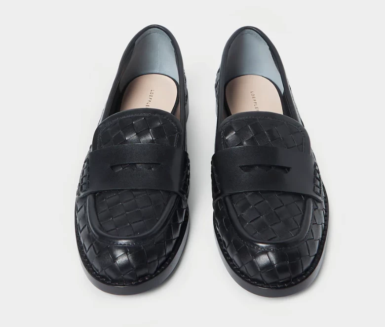 Penny loafer in woven Italian leather.