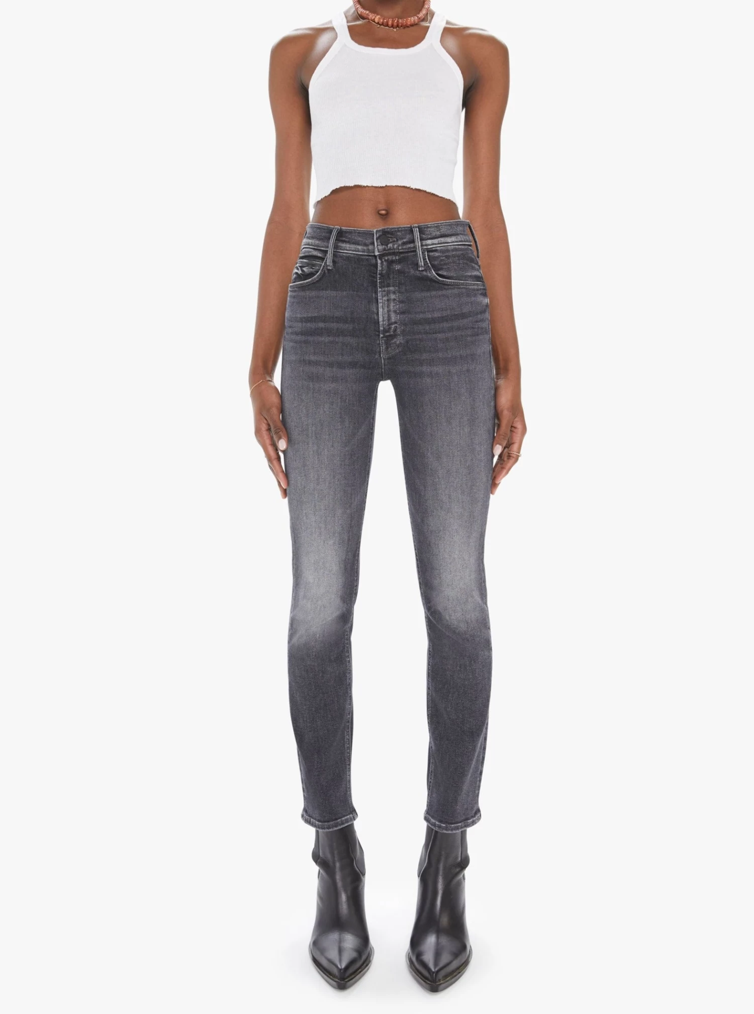 Man in the moon. The most popular mid-rise straight leg hits at the ankle with a clean hem. Cut from denim with a touch of stretch, The Night Is Watching is a washed black hue with fading and whiskering.