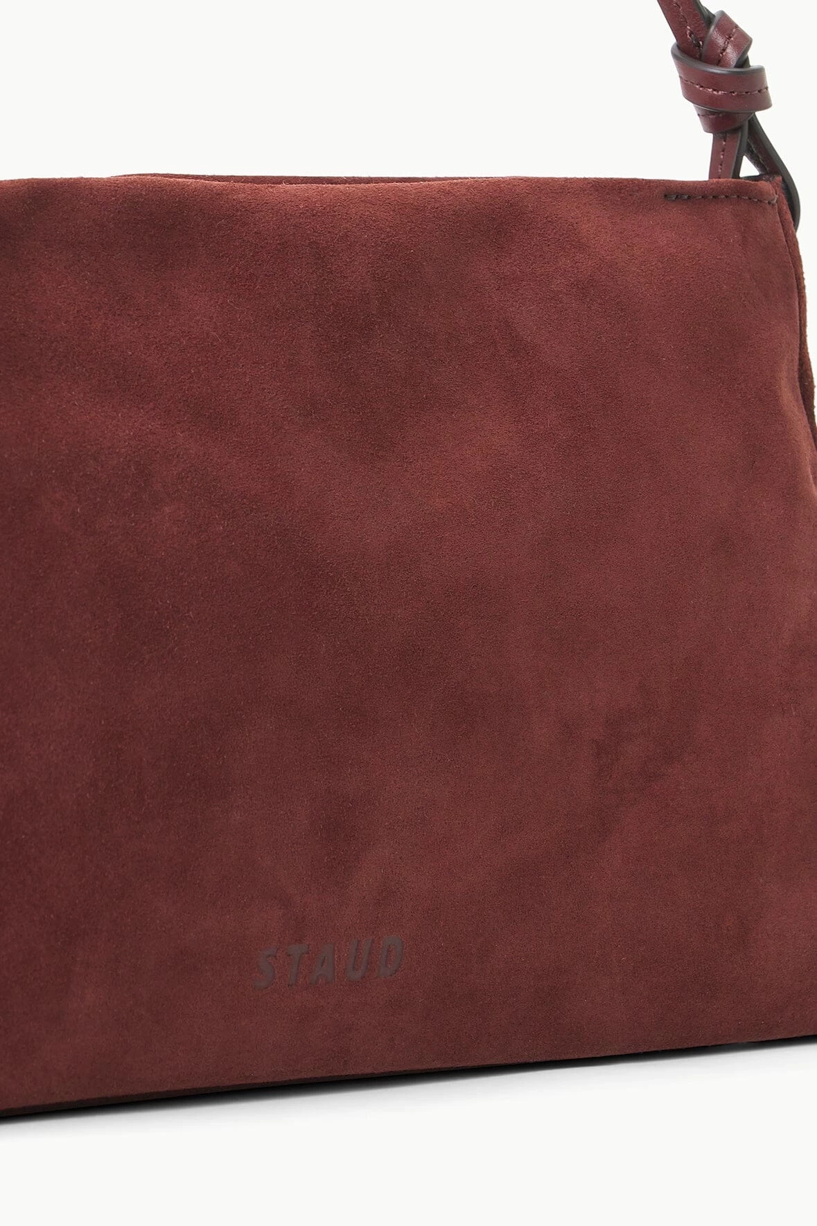 A simple slouchy suede shoulder bag with knotted strap ends, the Vivi features an interior pocket and zipper closure.