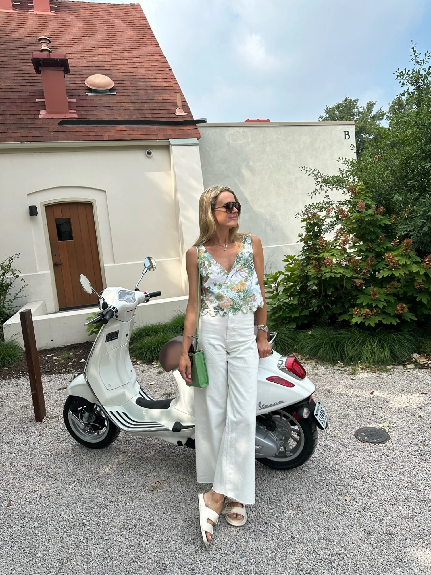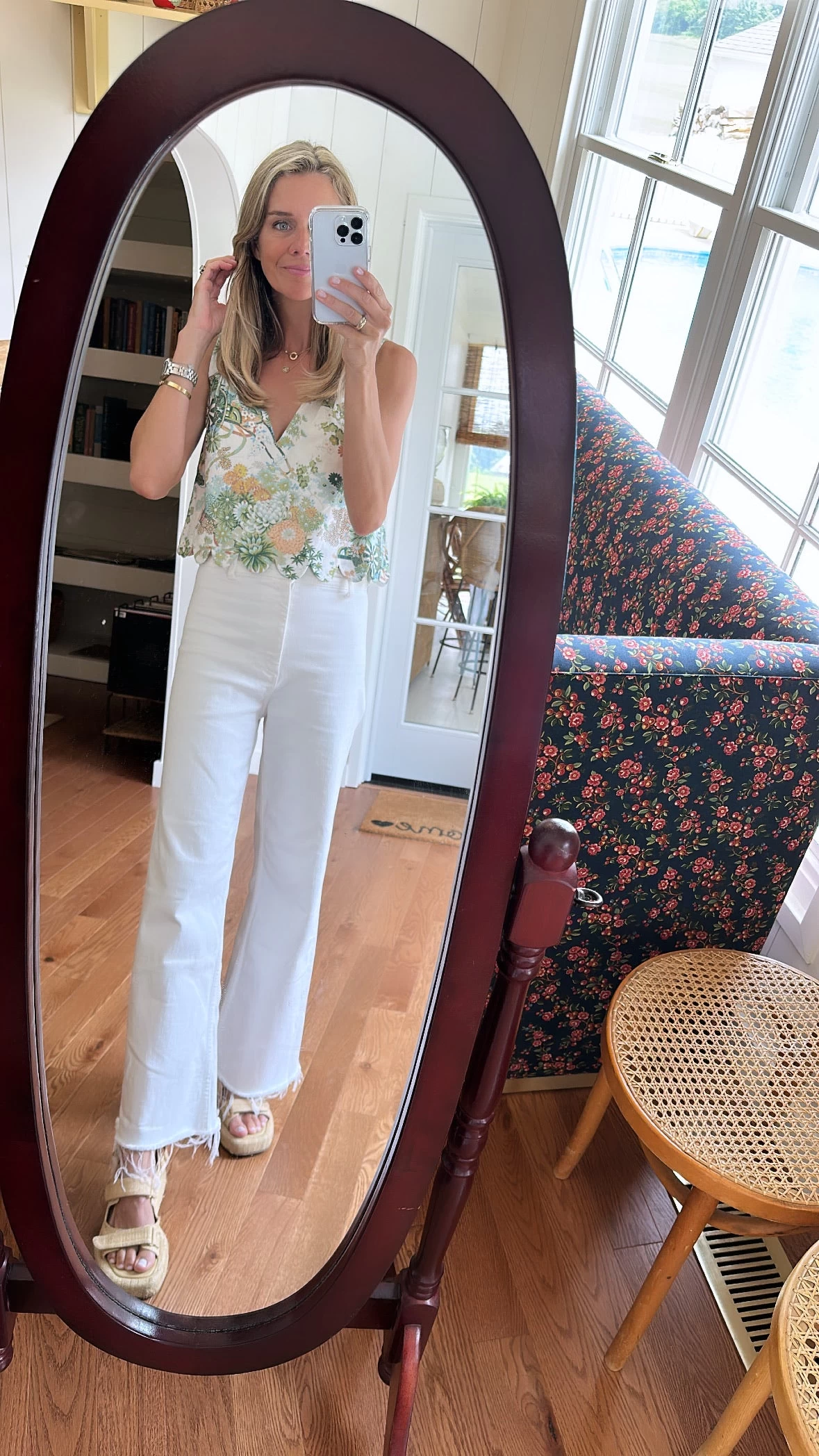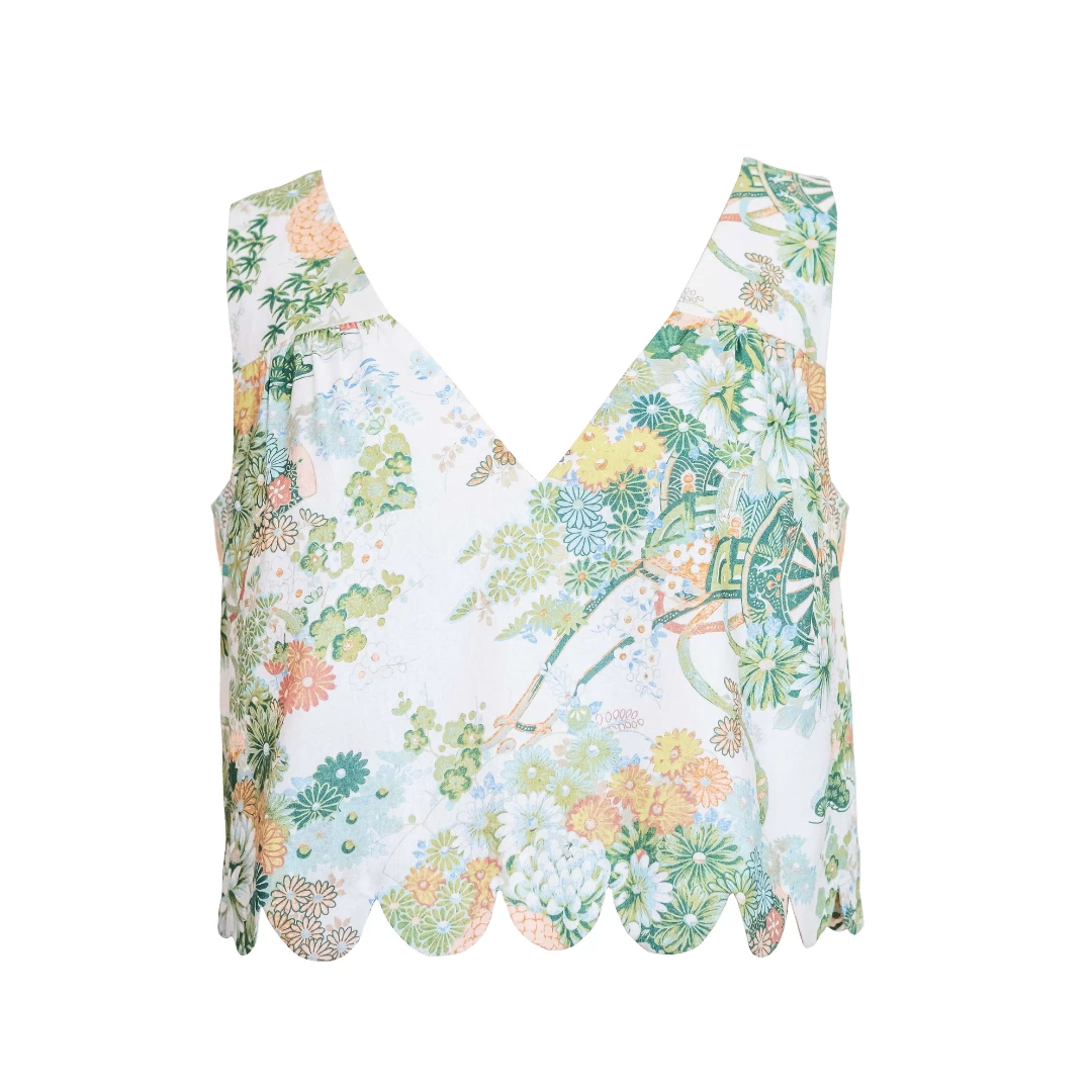 V-Neck Scallop Detail Tank, Spring Chinoiserie