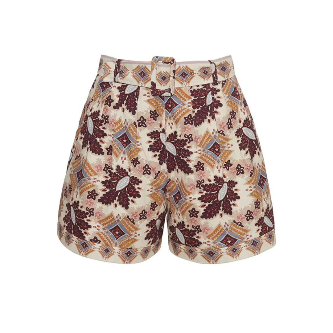 The high-waisted Zayna Shorts are polished with a hint of pizzazz. A patterned belt at the waist adds feminine allure to workwear chambray, while front pleats ensure a flattering fit.